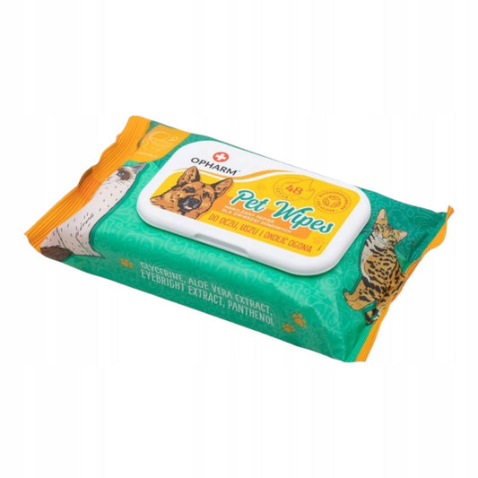 Vlhčené ubrousky pro péči o oči, uši, ocas zvířat 48 ks. Opharm