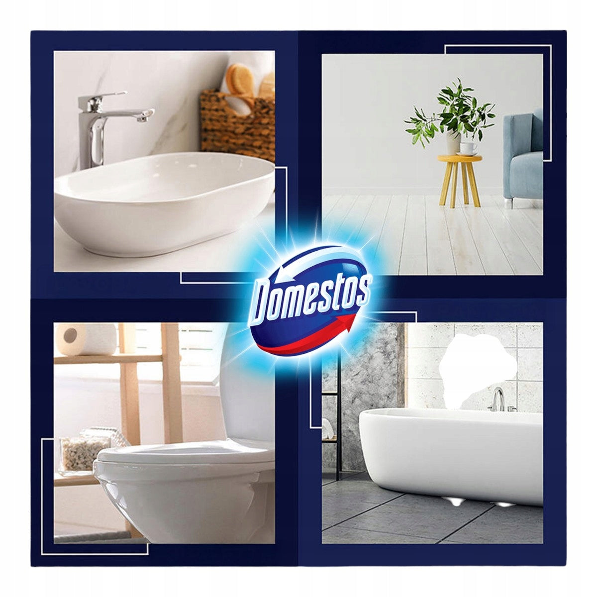 Domestos je ideální nejen pro toalety, ale i pro koupelny a kuchyně. Lze jej použít k čištění podlah, dřezů, odpadků a odpadkových košů.