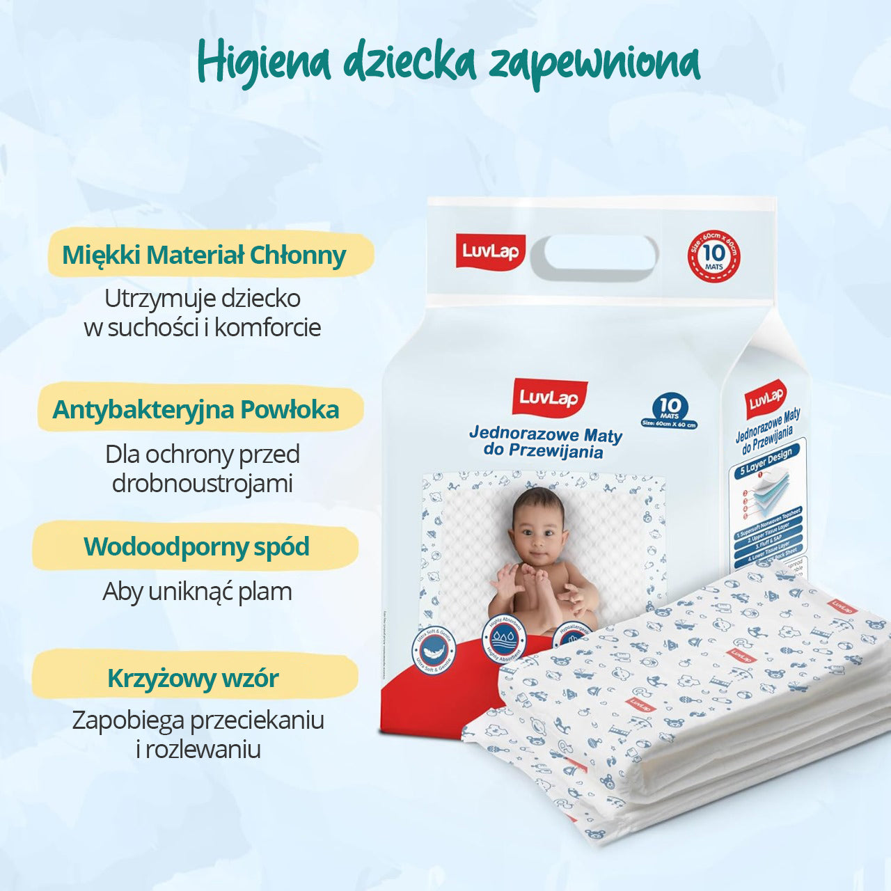 Zajistěte si hygienu, pohodlí a ochranu při každé výměně plenky díky Jednorázové vložky LuvLap 60×60 cm (10 ks) . Nenahraditelný produkt pro rodiče, kteří si cení čistoty, bezpečí a šetrnosti k pokožce svého dítěte.