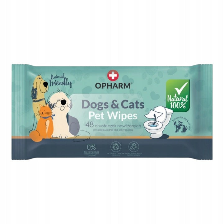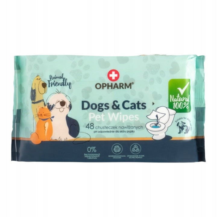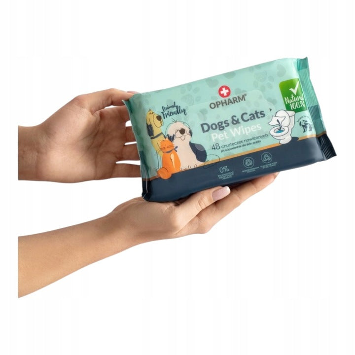 Vlhčené ubrousky pro psy a kočky, 48 ks, bez parfemace