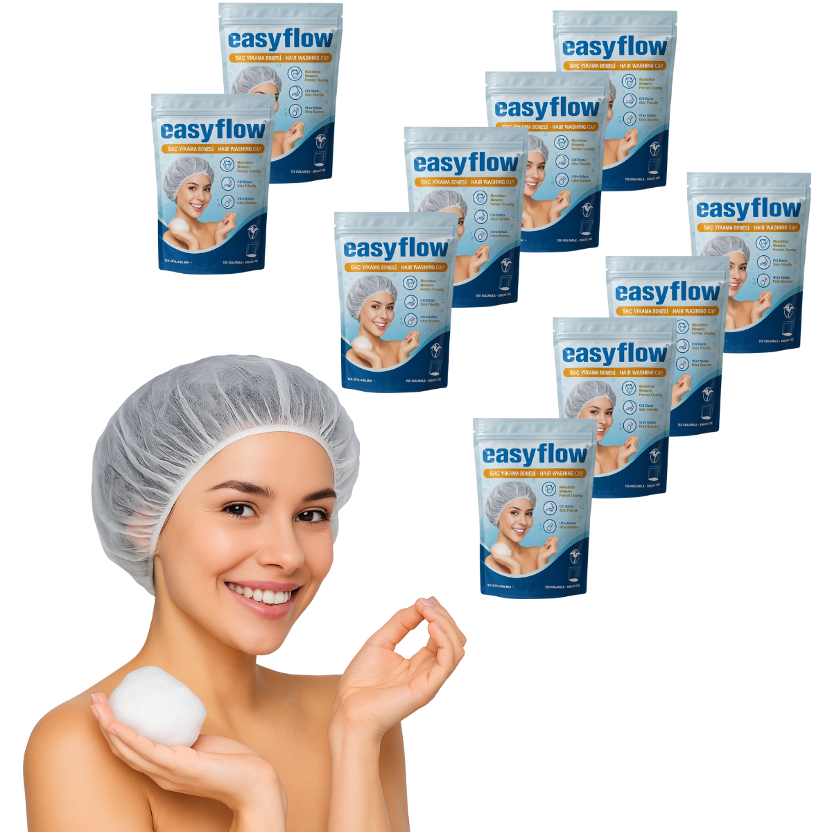 Čepice na mytí vlasů Easyflow Waterless – 10 kusů
