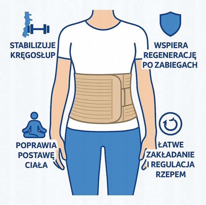 - Podtrzymuje i stabilizuje mięśnie brzucha i kręgosłupa