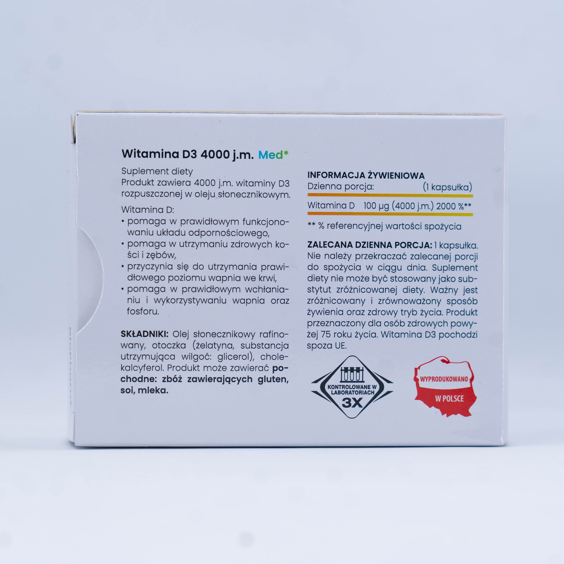 Vitamín D3 4000 IU je produkt obsahující 4000 IU vitamínu D3 rozpuštěného ve slunečnicovém oleji.